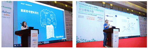 Exxonmobil在(zài)材料平(píng)行分論壇做分享 五月综合人人永久精品包裝集團回收材料合作夥伴華菲曹總在分享回收技術