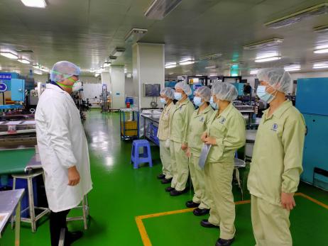 ▲南海區區委(wěi)閆昊波書記和南海區顧耀輝區長(zhǎng)到公司督查防疫情況