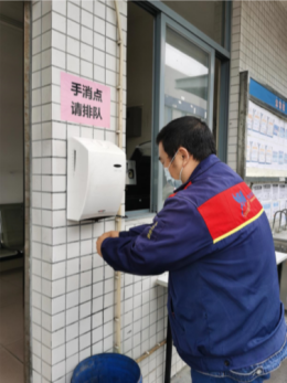 ▲設置廢棄口(kǒu)罩回收點以及手消毒(dú)點(diǎn),廢棄口罩(zhào)統一棄置,集中處理