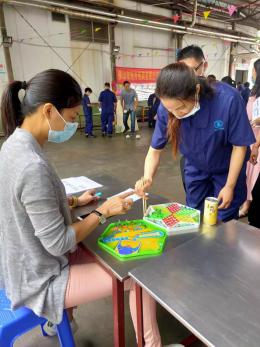高明廠區的(de)遊園活動共分為:中秋猜燈謎、手忙腳(jiǎo)亂(luàn)、歡樂射(shè)氣球(飛鏢擲(zhì)擲樂)、“袋袋”平(píng)安(袋鼠跳)、轉圈彈瓶蓋五個板塊(kuài)。活動還未開始,員工就已經開始摩拳擦掌,躍躍欲試。下麵讓我們(men)一同來感受他們的歡聲(shēng)笑語。